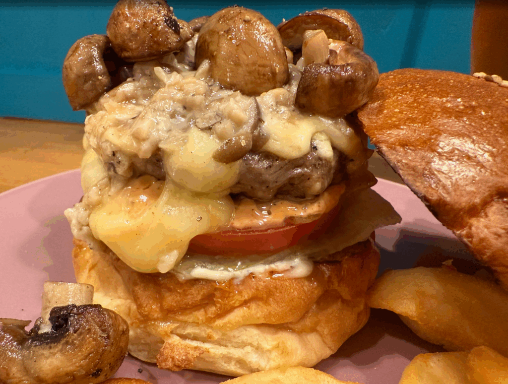 今日はサーフィン後に、BEARFOOTバーガーさんのマッシュルームバーガーを頂きました。おいしかった!!すごいですよね。このビジュアル。広告ではなく、私が食べる前に撮影したものですよ。