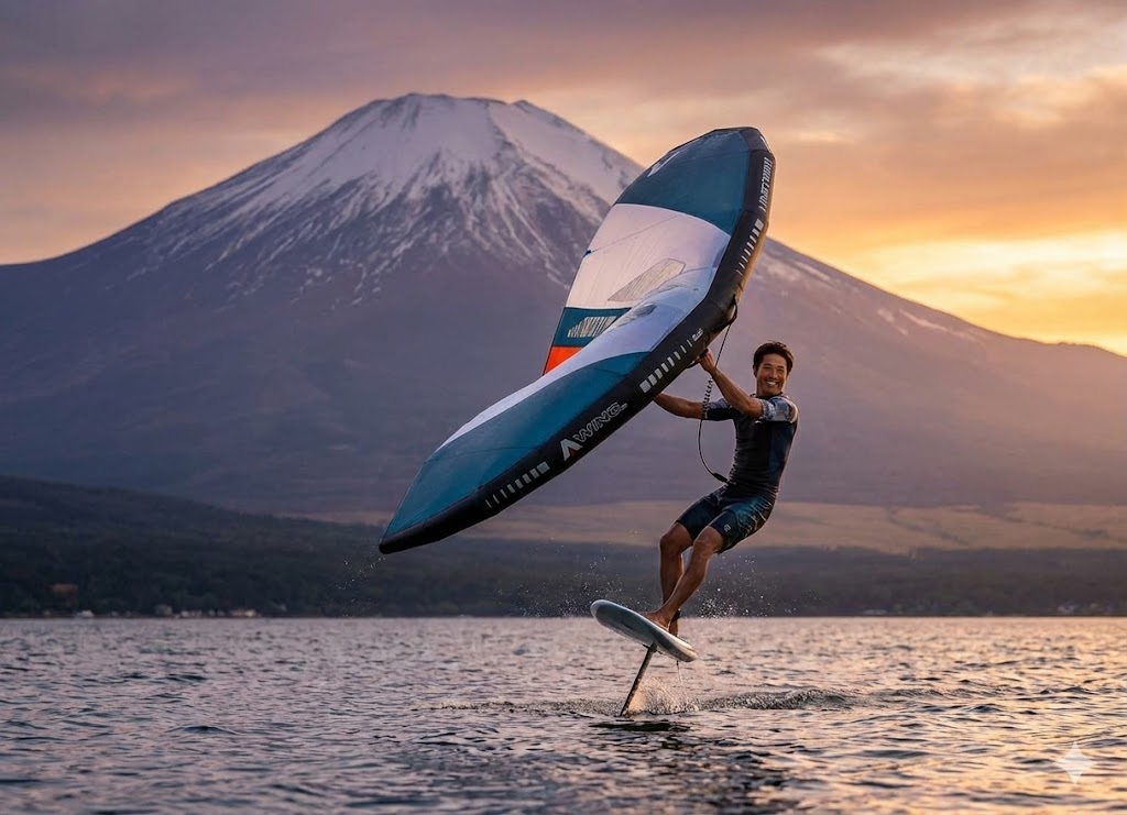 ボードの下に取り付けた水中翼(フォイル)**によって水面から浮き上がり、滑るように進む新しいマリンスポーツです。